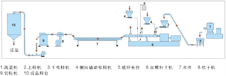 由于PC是不可生物降解的,回收是最好的,也是唯一的長期解決方案。由于PC是一種較強(qiáng)的工程塑料,其大部分產(chǎn)品都是通過成型工藝制造的,所以PC在回收前需要進(jìn)行適當(dāng)?shù)姆鬯?。傳統(tǒng)上采用單螺桿造粒機(jī) (YD系列) 或雙階單螺桿造粒機(jī) (SD系列) 完成回收,并且配套采用水冷拉條造粒方式。
